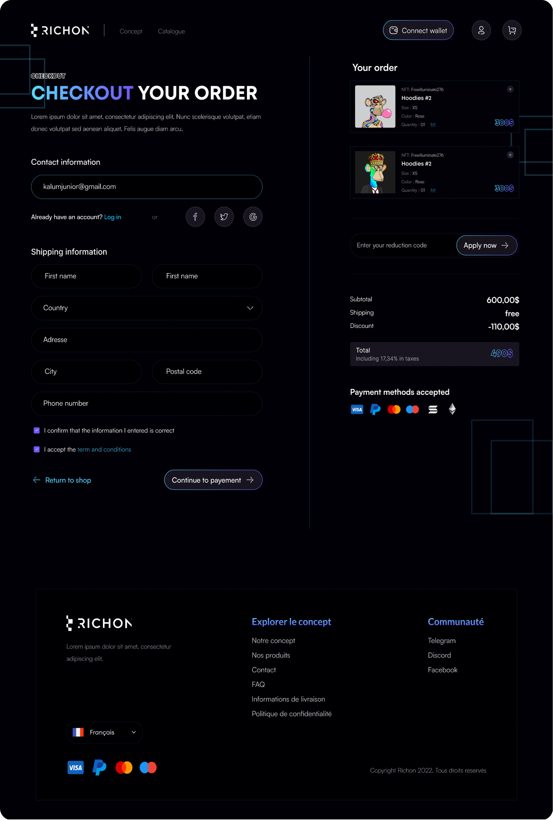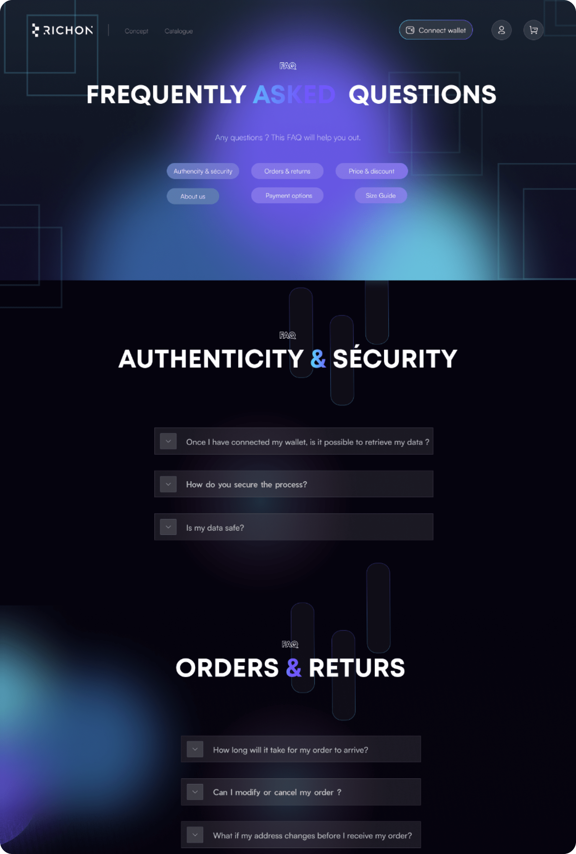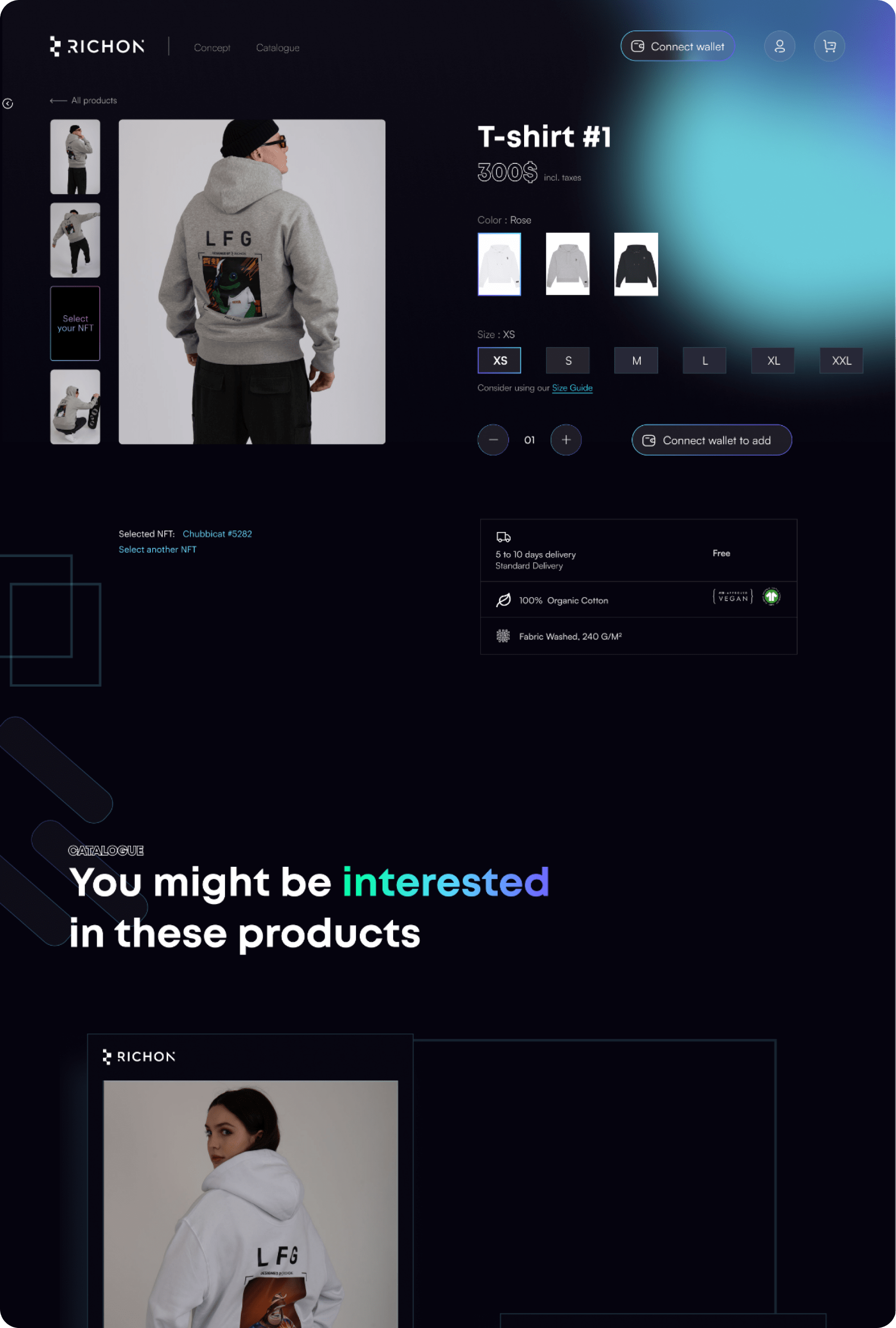 Richon est une nouvelle plateforme e-commerce web 3.0 permettant de vendre des vêtements personnalisés avec les NFTs des utilisateurs en se connectant directement à son wallet NFT. Nous avons aidé le client dans la conception de toute la startup du début à la fin en étant leur partenaire digital. Tout au long de ces mois, nous avons mis en place une stratégie en phase avec leur marché et leur niche, nous avons créé un branding reflétant la société et enfin développé un site internet évolutif fonctionnel.